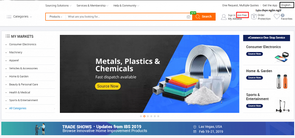 Trước tiên, bạn hãy đăng nhập vào trình duyệt AliExpress sau đó chọn Join Free.